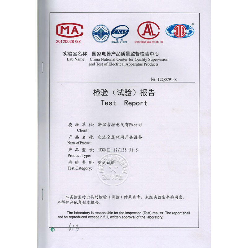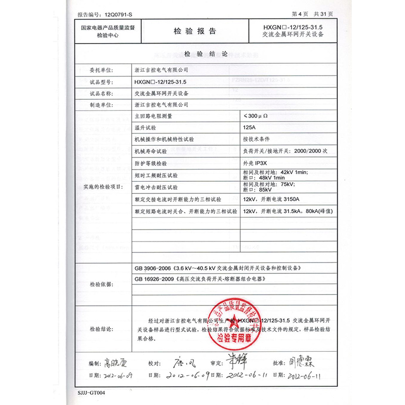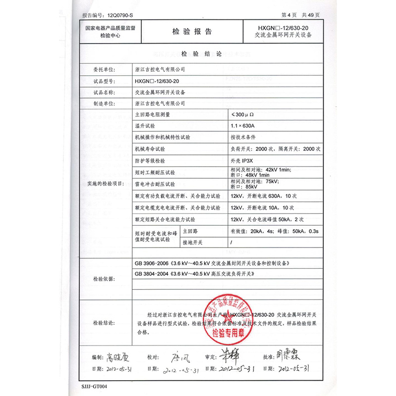 戶內(nèi)交流箱型固定式金屬封閉開關(guān)設(shè)備檢驗報告