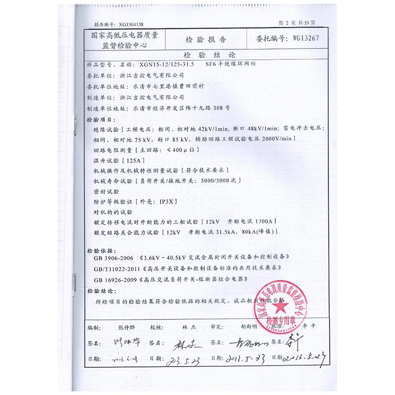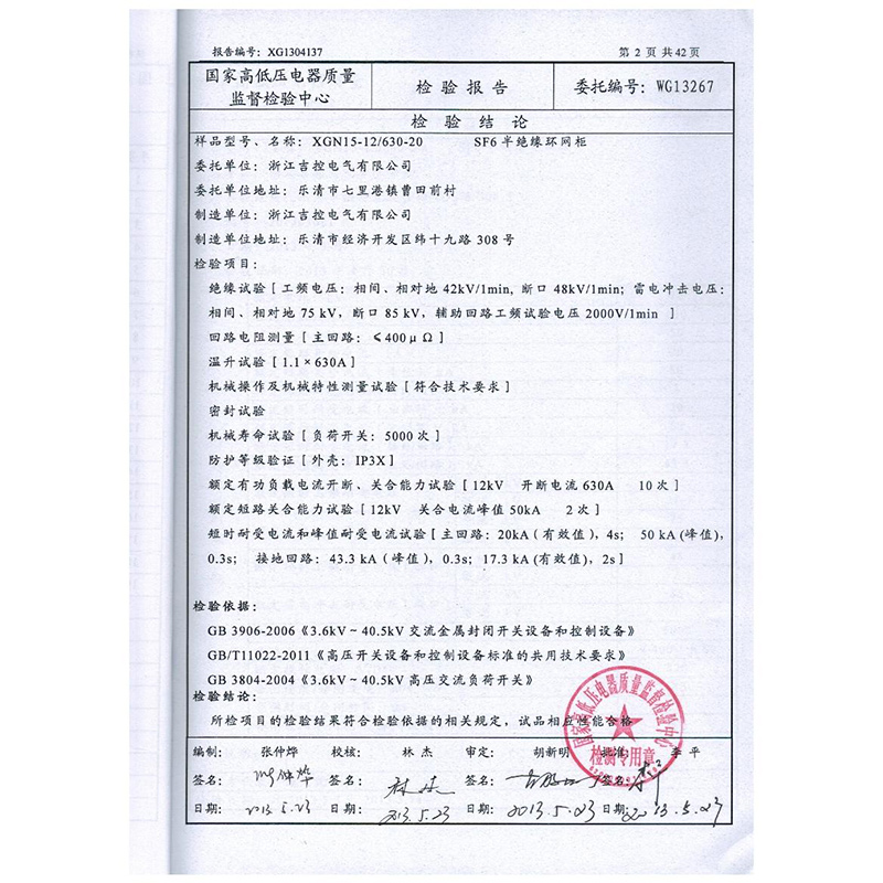 戶內(nèi)交流箱型固定式金屬封閉開關(guān)設(shè)備檢驗報告